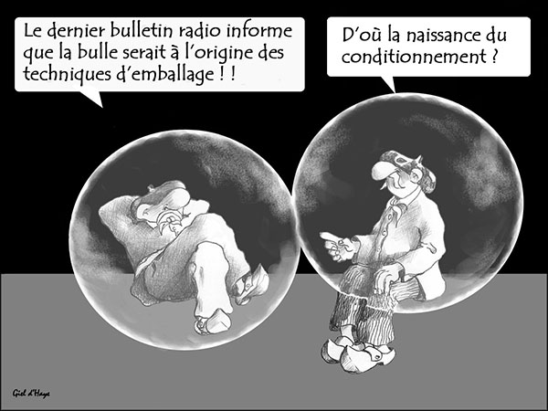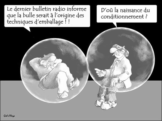 Il y ceux qui, dans leur tintinna-bulle, cherchent en permanence à se faire remarquer. On dirait que les dirigeants, quant à eux, se complaisent trop souvent dans une fa-bulle qu’ils ont surgonflée de prétentions et de mensonges. De nombreux scientifiques se sont endormis dans leur chambre à bulles où ils passent leur temps à rêver d’un monde meilleur.